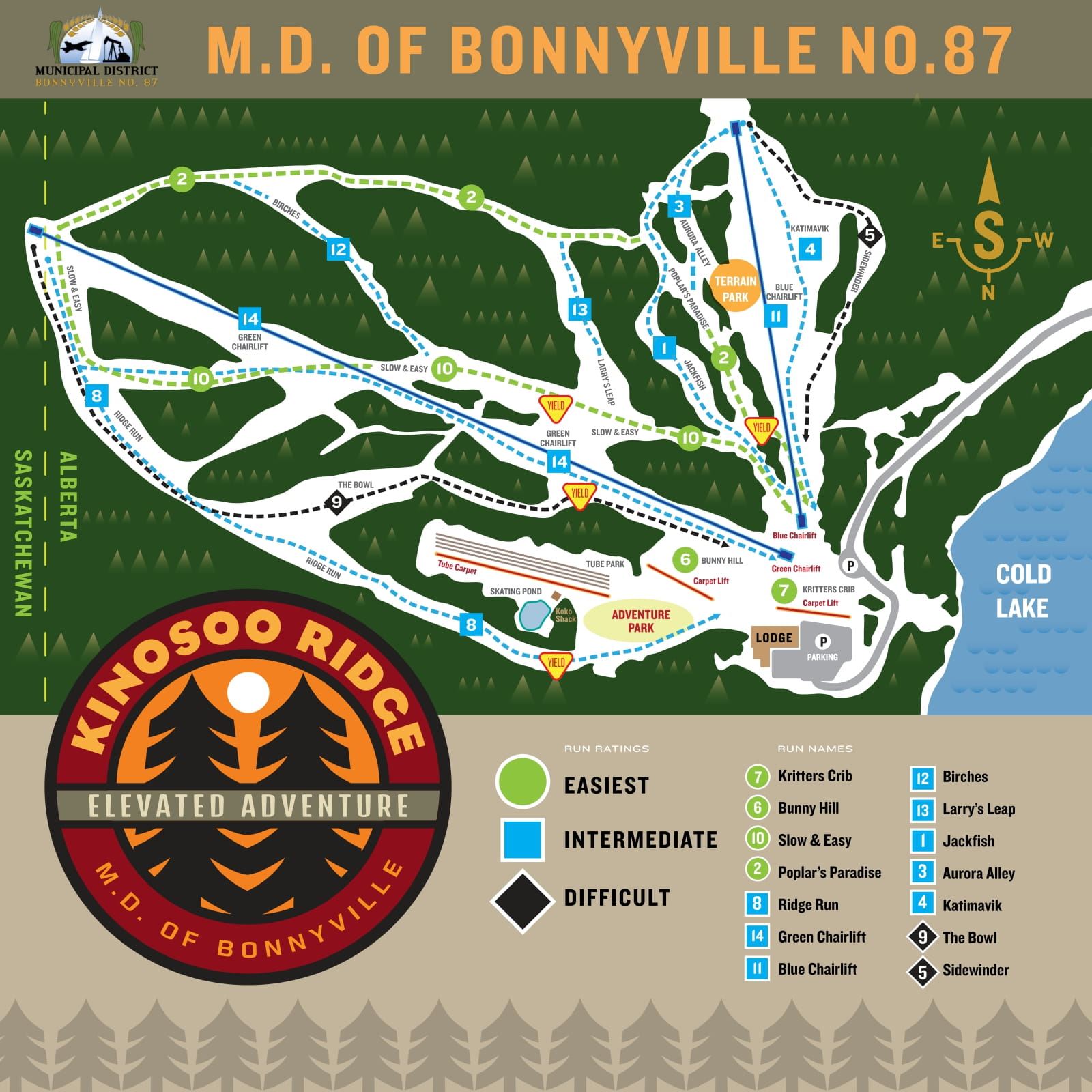 Now a year-round attraction, Kinosoo Ridge Resort offers Alberta's newest Aerial Adventure Park in the summer and over 40 acres of skiable terrain in the winter.